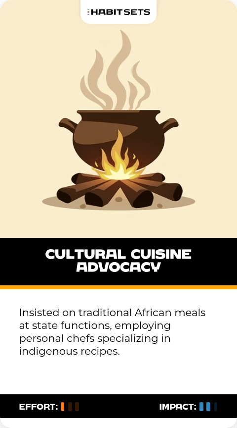 Insisted on traditional African meals at state functions, employing personal chefs specializing in indigenous recipes.