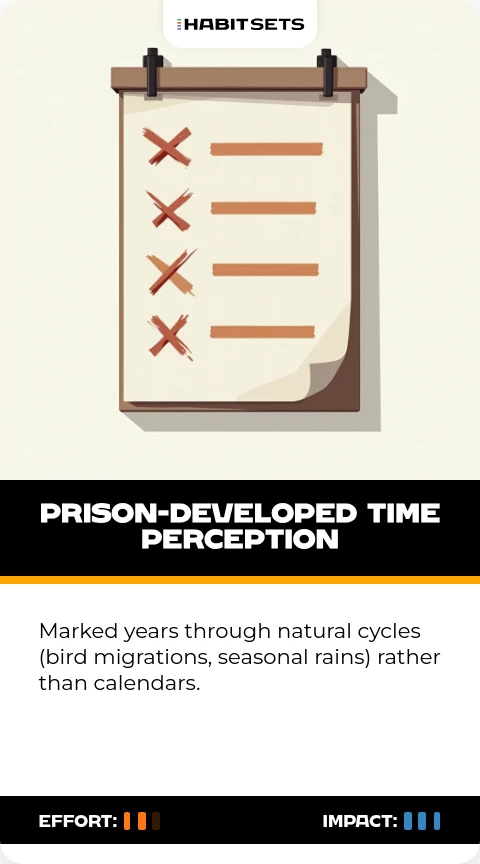 This habit helped Mandela maintain strategic focus when incarcerated. He later applied similar structured planning to manage South Africa's transition from apartheid.