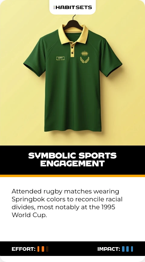 Mandela leveraged sports' unifying power to heal post-apartheid tensions. This habit exemplified his belief in symbolic gestures to drive social change.