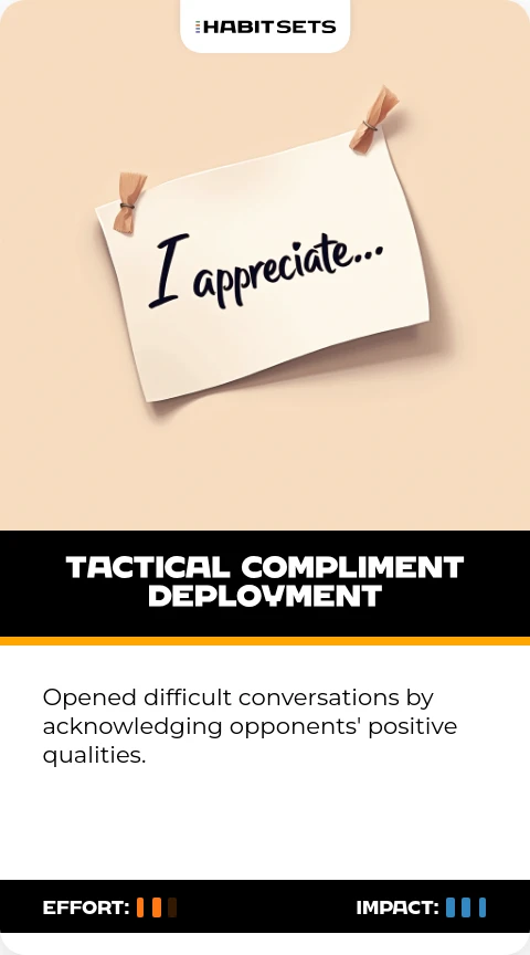Mandela disarmed adversaries through strategic praise, creating goodwill for tough negotiations. This habit stemmed from understanding apartheid's psychological dimensions.