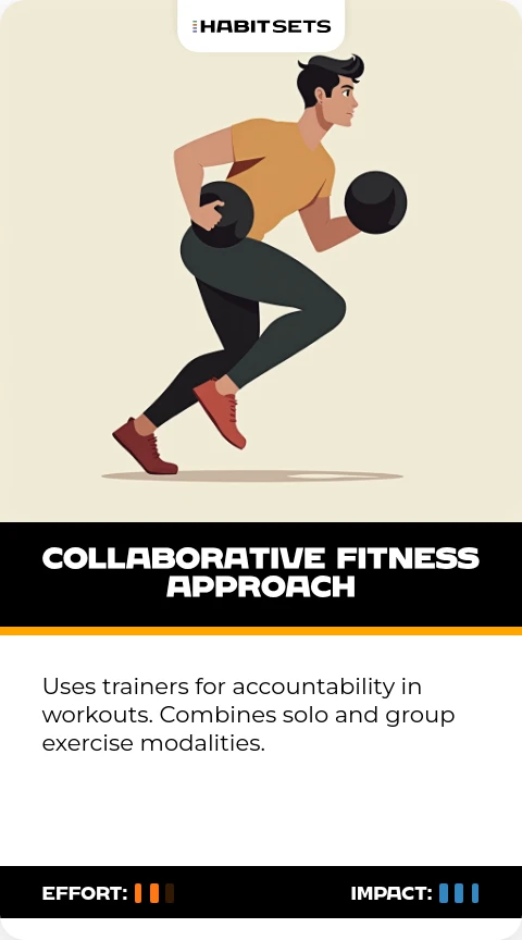 Uses trainers for accountability in workouts. Combines solo and group exercise modalities.