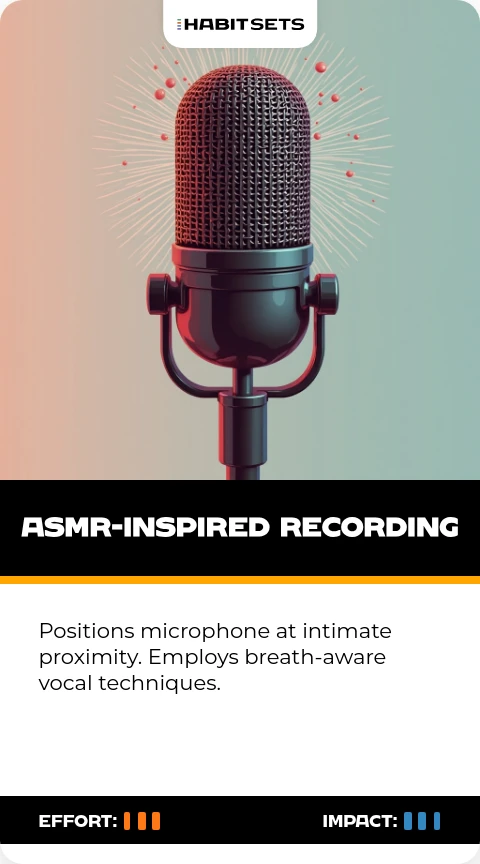 Positions microphone at intimate proximity. Employs breath-aware vocal techniques.