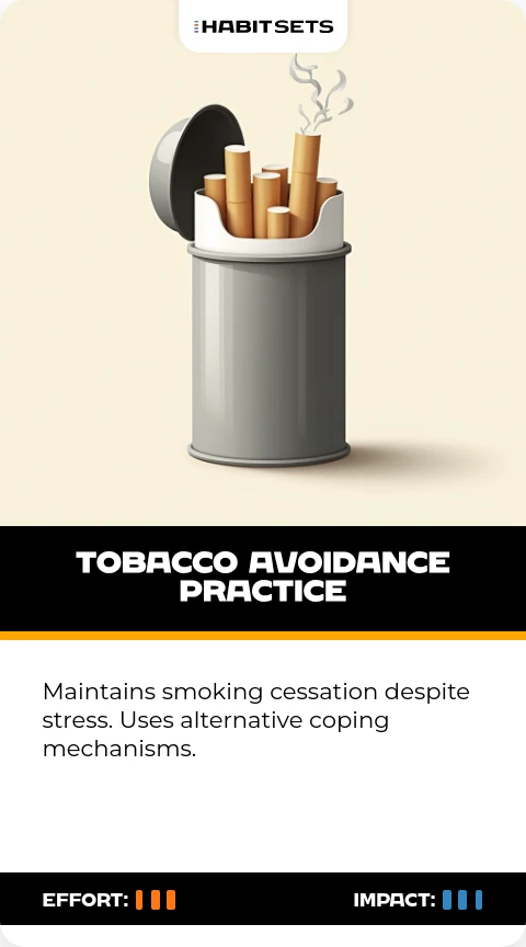 Maintains smoking cessation despite stress. Uses alternative coping mechanisms.