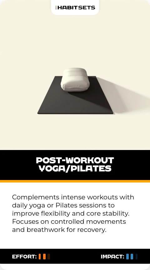 Complements intense workouts with daily yoga or Pilates sessions to improve flexibility and core stability. Focuses on controlled movements and breathwork for recovery.