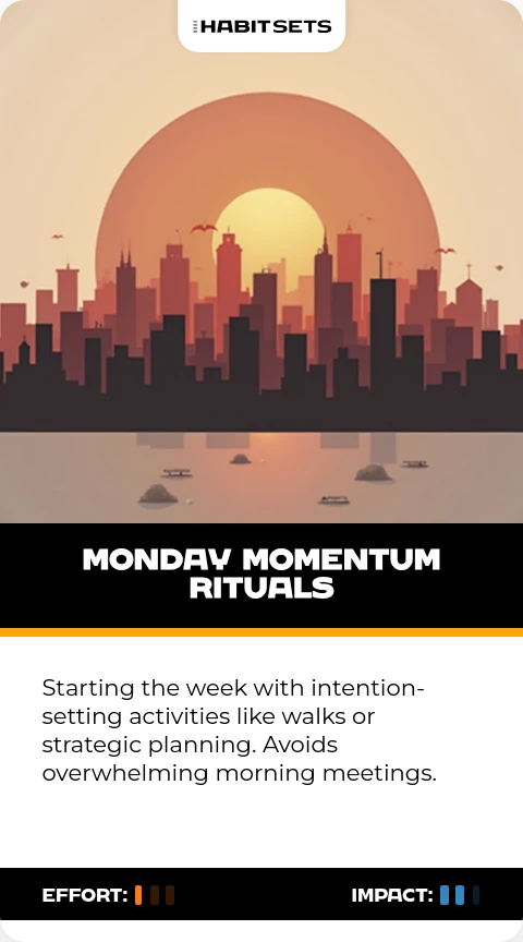 Starting the week with intention-setting activities like walks or strategic planning. Avoids overwhelming morning meetings.