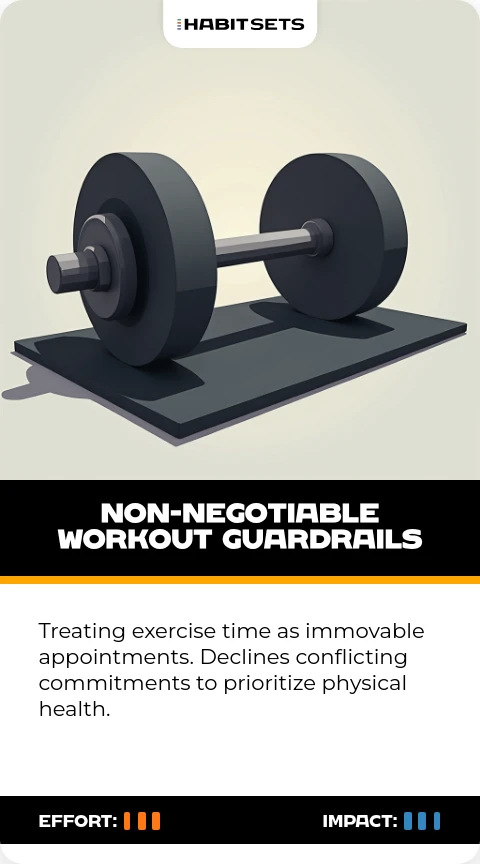 Treating exercise time as immovable appointments. Declines conflicting commitments to prioritize physical health.