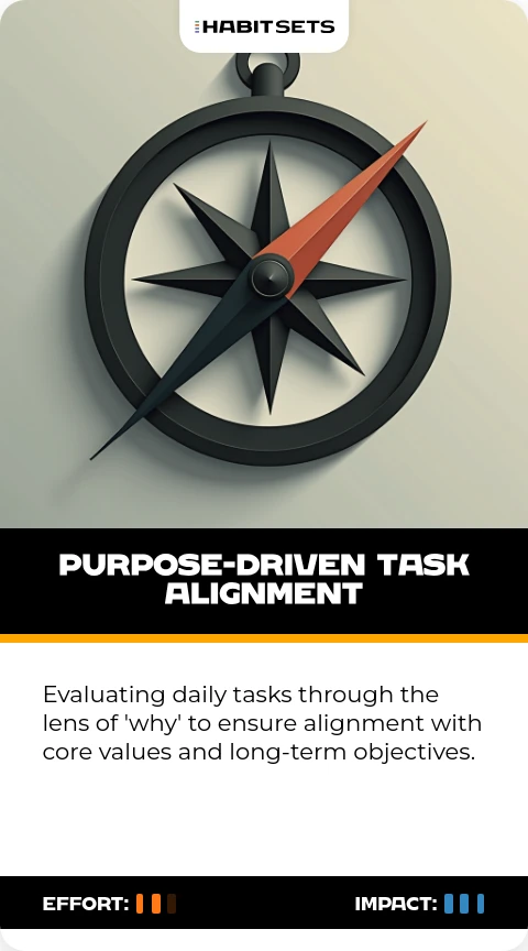 Evaluating daily tasks through the lens of 'why' to ensure alignment with core values and long-term objectives.