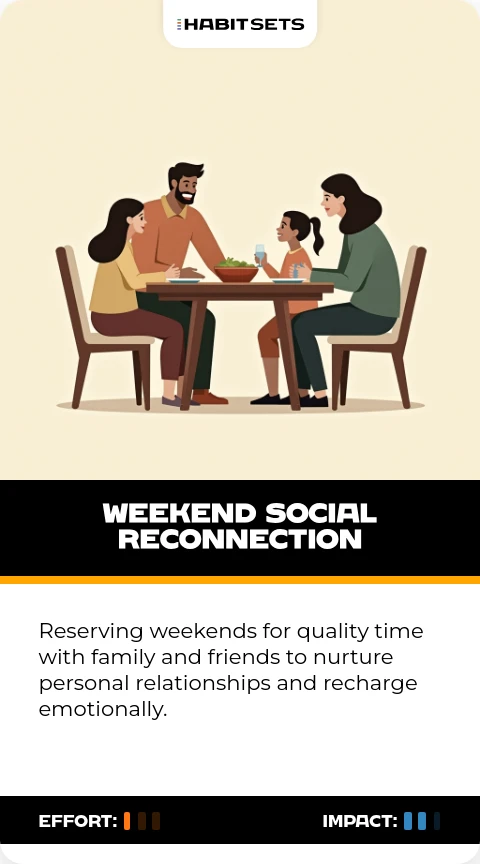 Reserving weekends for quality time with family and friends to nurture personal relationships and recharge emotionally.