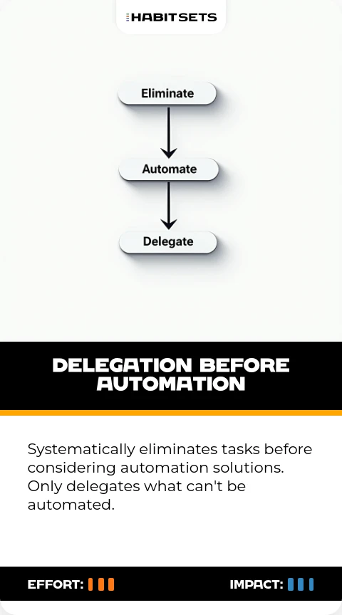 - Strategic Efficiency: Underscore the principle of eliminating tasks before automating or delegating, promoting a lean and effective approach to workload management.