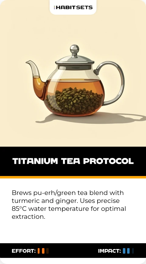 Provides sustained caffeine boost without jitters. Ferriss values the combo's cognitive benefits and potential AMPK activation for fat metabolism.