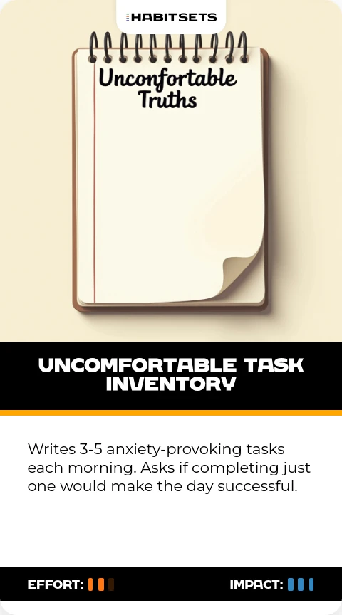 Forces confrontation with procrastination triggers. Ferriss uses this as 'exposure therapy' to build tolerance for high-impact work.