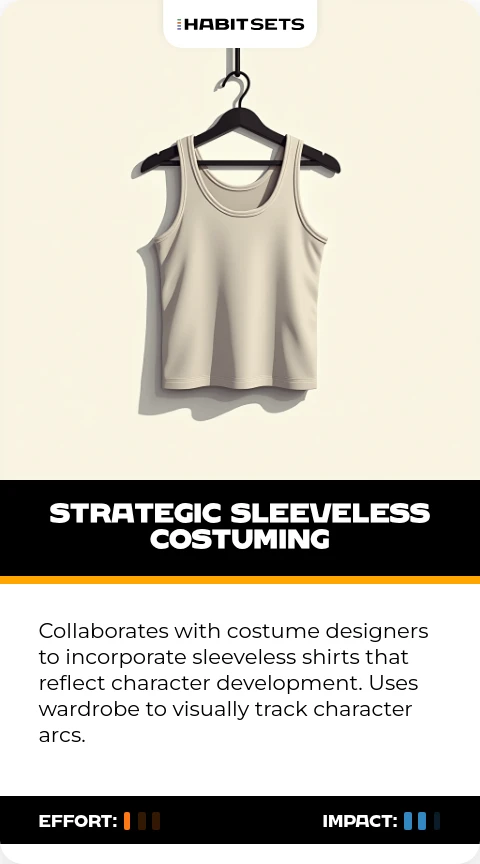 Collaborates with costume designers to incorporate sleeveless shirts that reflect character development. Uses wardrobe to visually track character arcs.