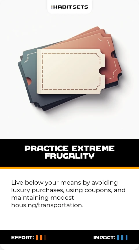 Live below your means by avoiding luxury purchases, using coupons, and maintaining modest housing/transportation.