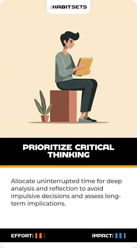 Allocate uninterrupted time for deep analysis and reflection to avoid impulsive decisions and assess long-term implications.