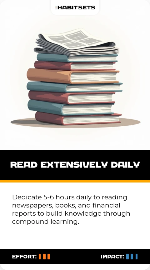 Dedicate 5-6 hours daily to reading newspapers, books, and financial reports to build knowledge through compound learning.
