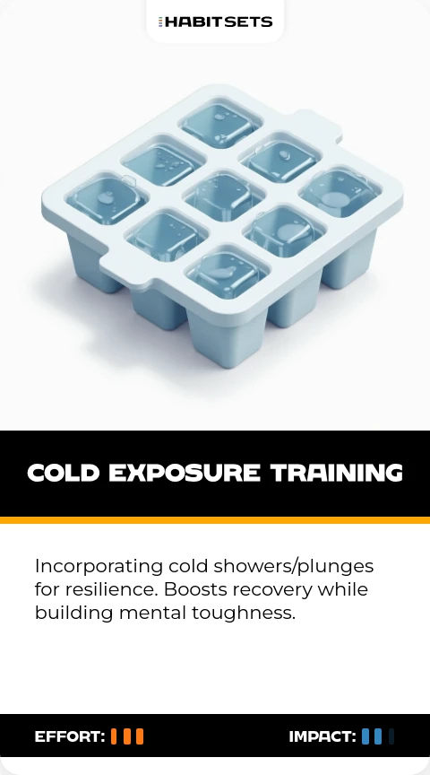 Incorporating cold showers/plunges for resilience. Boosts recovery while building mental toughness.