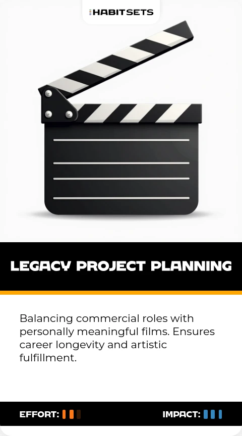 Balancing commercial roles with personally meaningful films. Ensures career longevity and artistic fulfillment.