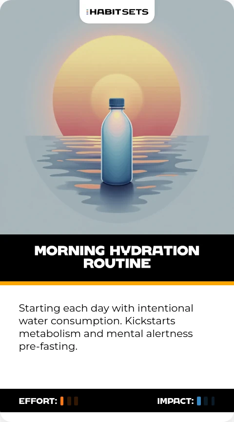Starting each day with intentional water consumption. Kickstarts metabolism and mental alertness pre-fasting.