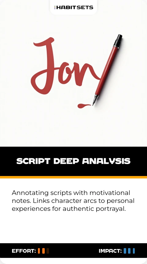 Annotating scripts with motivational notes. Links character arcs to personal experiences for authentic portrayal.
